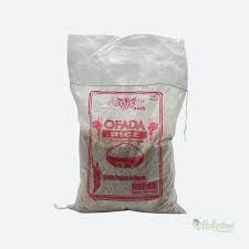 A 10-pound bag of Ofada rice, a unique Nigerian rice variety.